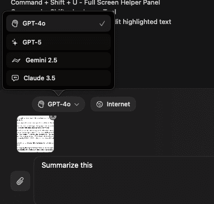 Just click a shortcut and instantly select the area of your screen to have a convo with any model about.