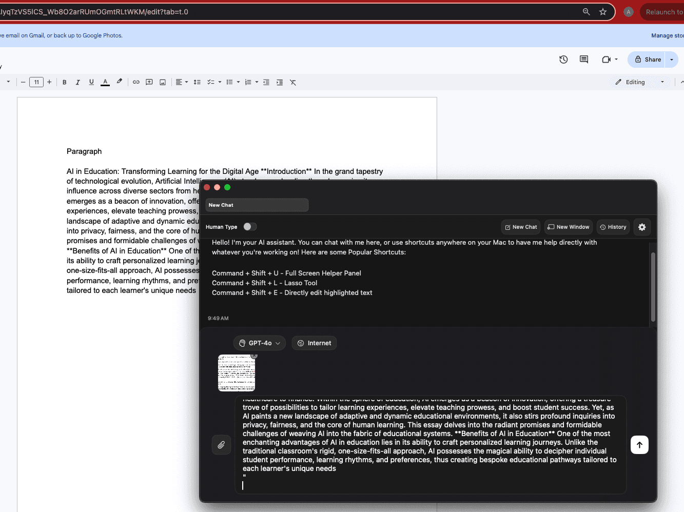 Simply click a shortcut and give instructions to an AI model of your choice for revising the highlighted text, and sit back as it makes the change for you.